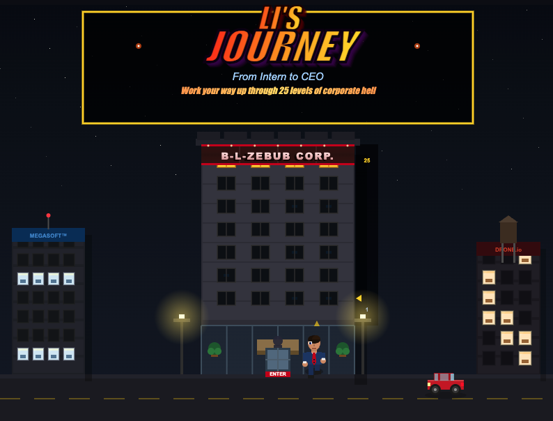 Intern Li just joined B‑L‑Zebub Corp—and he’s done playing nice. To climb the corporate ladder, Li must master buzzwords, battle rogue AI bots, and take down brutal bosses using wh