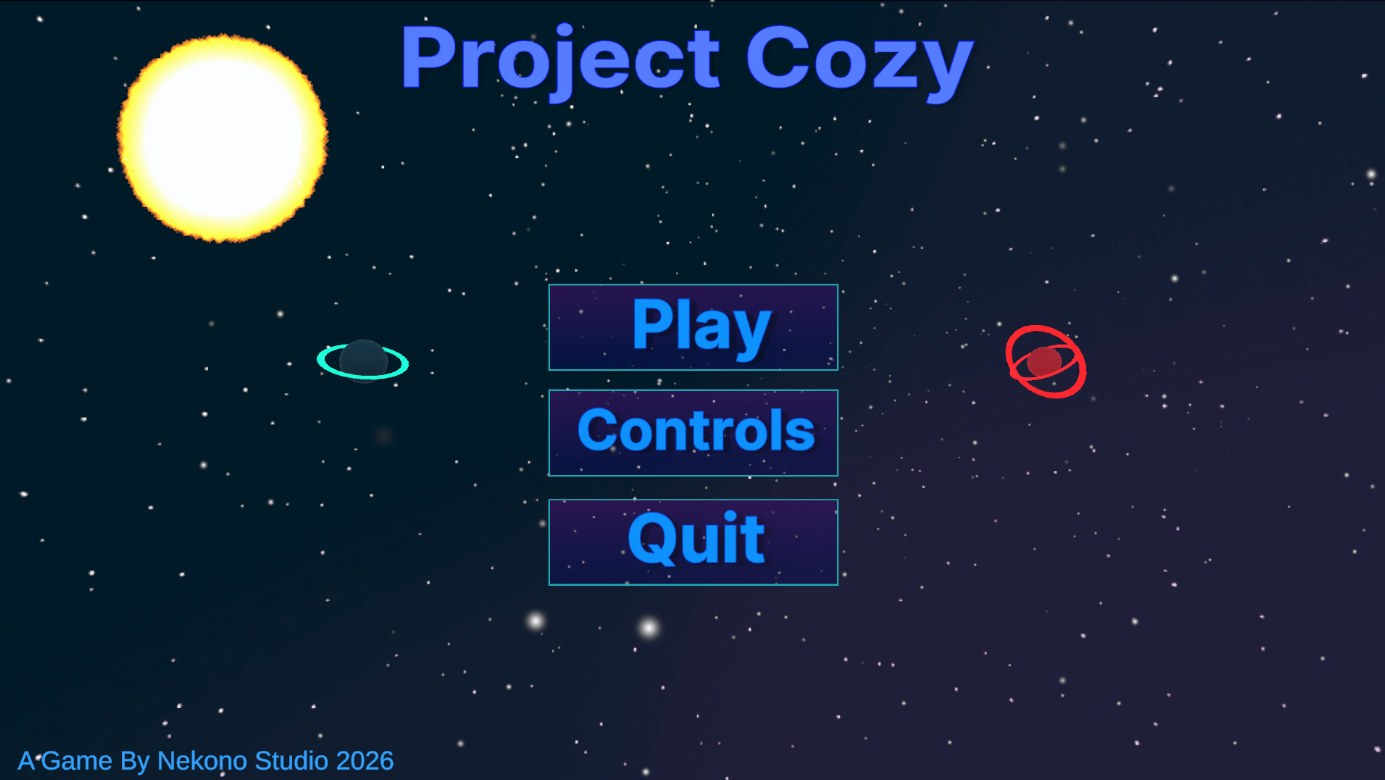 Hey there! Here is another game I made in a week for college. This week I bring you Project Cozy! Get transported to your own private room with a beautiful view of the galaxy!