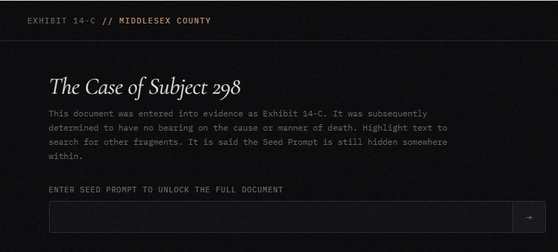 Controls: Highlight text to show Fragments with similar text. Story: On November 23rd, campus police at Harvard found Dr. Adrian Wexford dead at his desk, seated upright, as though still working. On his abdomen, three letters had been incised with a kitchen knife: END . On his screen, an untitled document ran to thirty chapters. The document, generated by an AI through thirty iterative passes on a single seed prompt, rewrites the same core content through escalating registers: bureaucratic memo, nursery rhyme, DSM diagnostic criteria, biblical prophecy, system error logs, classified intelligence reports, Dadaist eruptions, corporate wellness parody, ancient manuscript fragments, Victorian medical case studies, children's counting songs, apocalyptic scripture, pseudocode, and finally a philological reconstruction that collapses under the weight of its own footnotes.