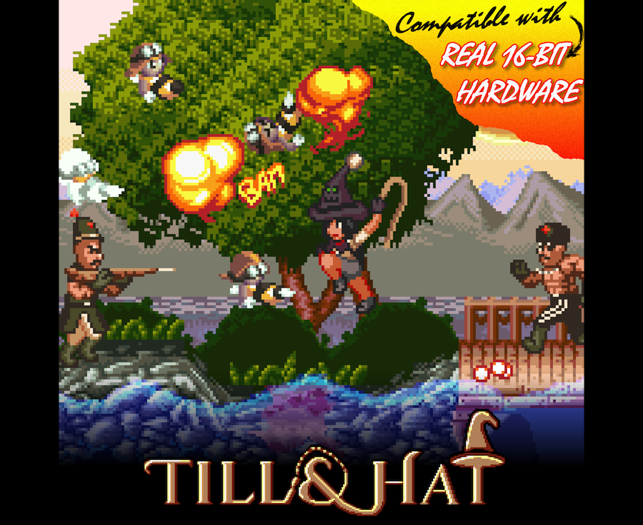 Till & Hat is an upcoming fast-paced 2D action game for the SNES. Take control of Till , a whip-wielding thief in pursuit of treasure, and Hat , a mysterious sentient artifact she recovers from the Imperial vault who lends her his powers.
